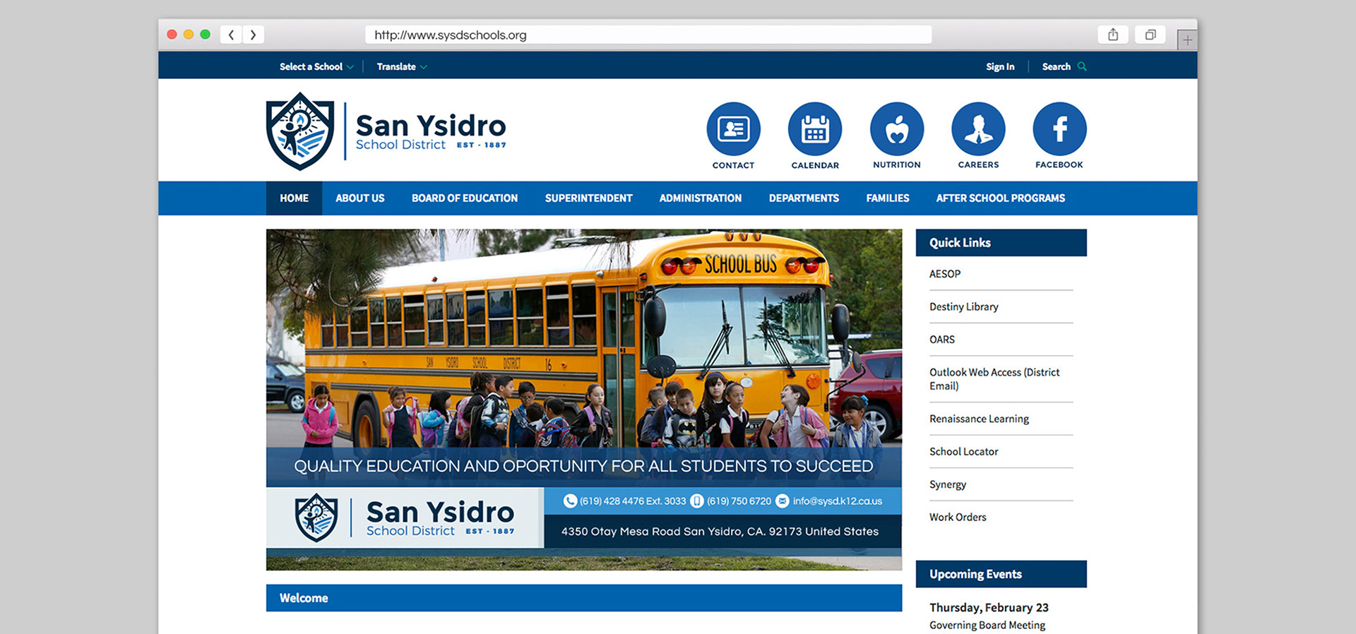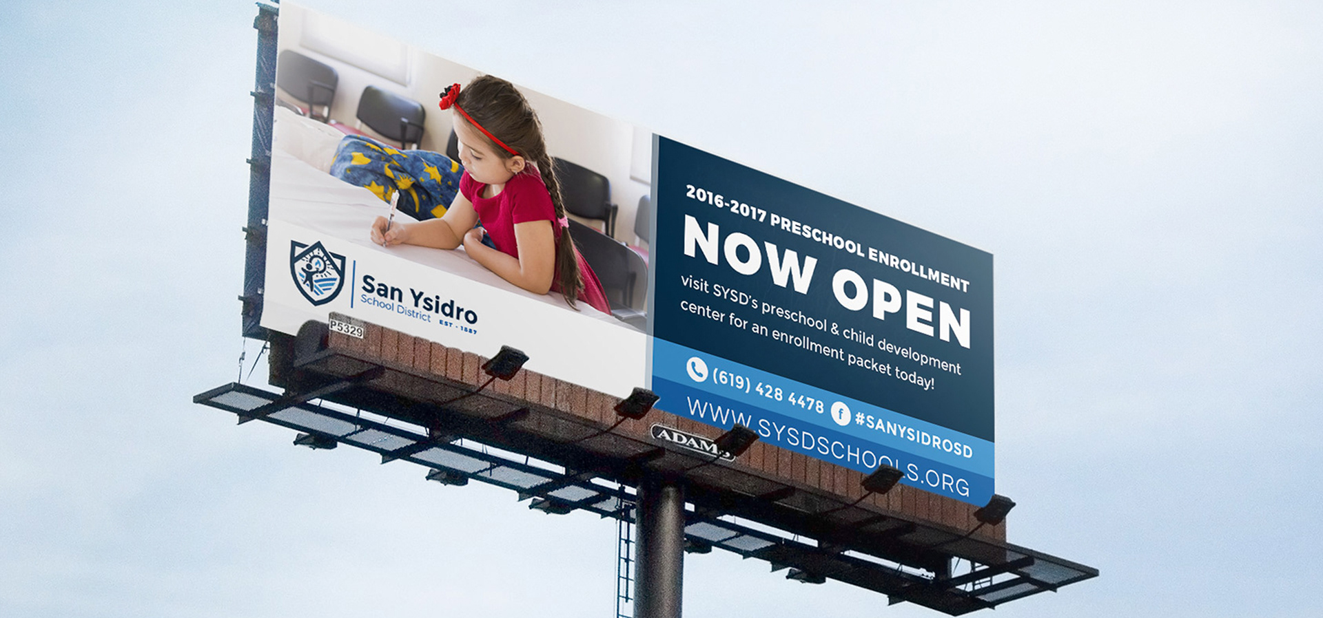 The new San Ysidro School District brand Identity System is expected to be presented at the beginning of the new School Year in 2017 and could be previewed on the SYSD website, social media, billboards, collateral and internal communications.